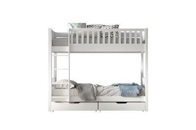 De Scott bedladeset is gemaakt van wit gelakt massief grenen en MDF, wat zorgt voor een solide en duurzame constructie. Met deze set ben je verzekerd van praktische opbergruimte die ook nog eens bijdraagt aan de stijl van de kamer. Geef iedereen in de kamer de mogelijkheid om hun spullen op te bergen, zonder concessies te doen aan de esthetiek.
