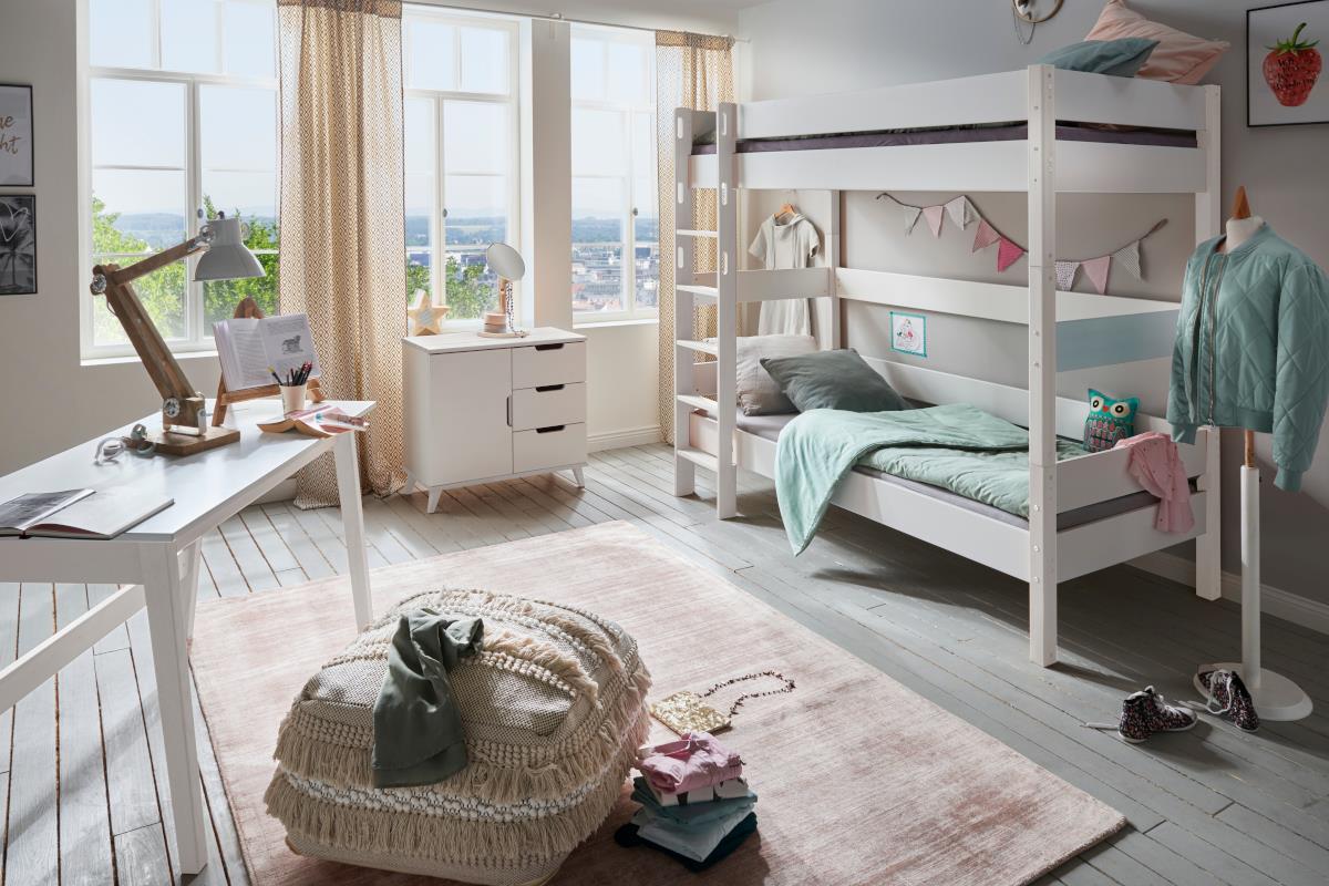 Ontdek het stijlvolle en praktische Infans Color Stapelbed in wit. Gemaakt van Europees naaldhout en MDF, met veilige rechte trap en flexibel ontwerp. Voeg stijl en functionaliteit toe aan je slaapkamer!
