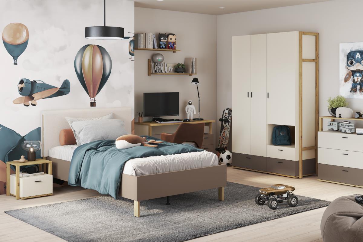 Met de Lenny meubelserie geef je jouw kinderkamer of tienerkamer een warme en klassieke uitstraling. De kleurencombinatie van ambachtelijk eiken en beige tinten zorgt voor een tijdloze, elegante sfeer. Van comfortabele bedden en ruime kledingkasten tot praktische bureaus en nachtkastjes – de Lenny collectie biedt alles om een stijlvolle, functionele kamer te creëren. Ontdek de balans tussen vakmanschap en moderne veelzijdigheid met deze unieke collectie!