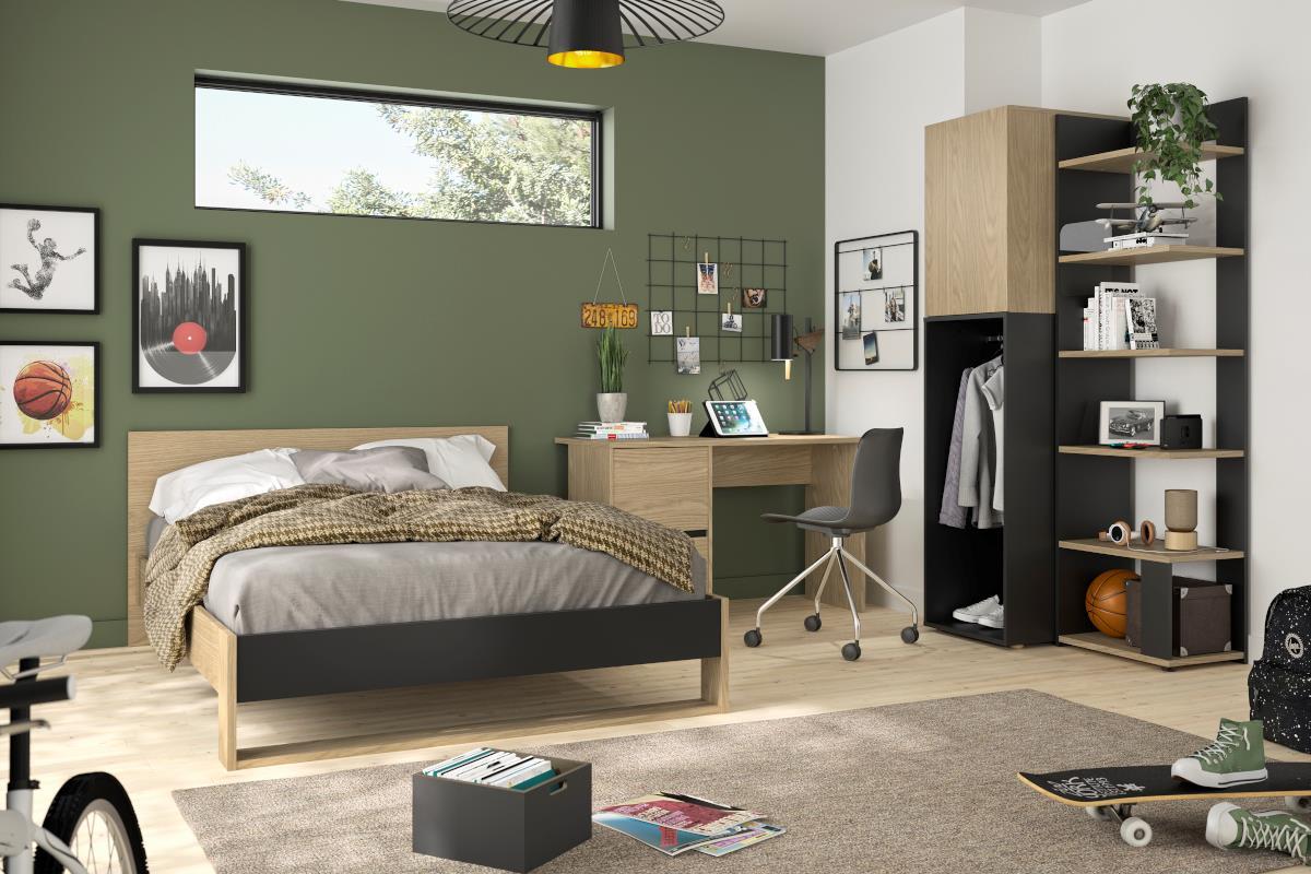 Creëer een stijlvolle en functionele kinderkamer of tienerkamer met de Nael collectie van Meubelzone. Deze eigentijdse meubelserie combineert een moderne vormgeving met subtiele industriële accenten, dankzij details in zwart en een warme eiken afwerking die het geheel een unieke uitstraling geven. De Nael collectie is ontworpen met het oog op flexibiliteit en ruimtebesparing: van slimme hoogslapers met geïntegreerde bureaus tot compacte commodes met meerdere opbergzones. Elk meubel is vervaardigd in Frankrijk en getuigt van hoge kwaliteit en doordachte functionaliteit. Ideaal voor elke kamer, van klein tot groot.